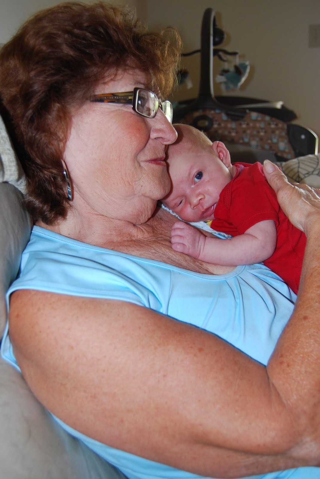 On Sunday, we had a very happy visit from Grey's great Grammar Studer and Aunt Pam. They only stayed the afternoon, but we were so happy that Greyson finally got to meet his great Grammar. Grey is her first grandson since Brandon!