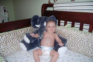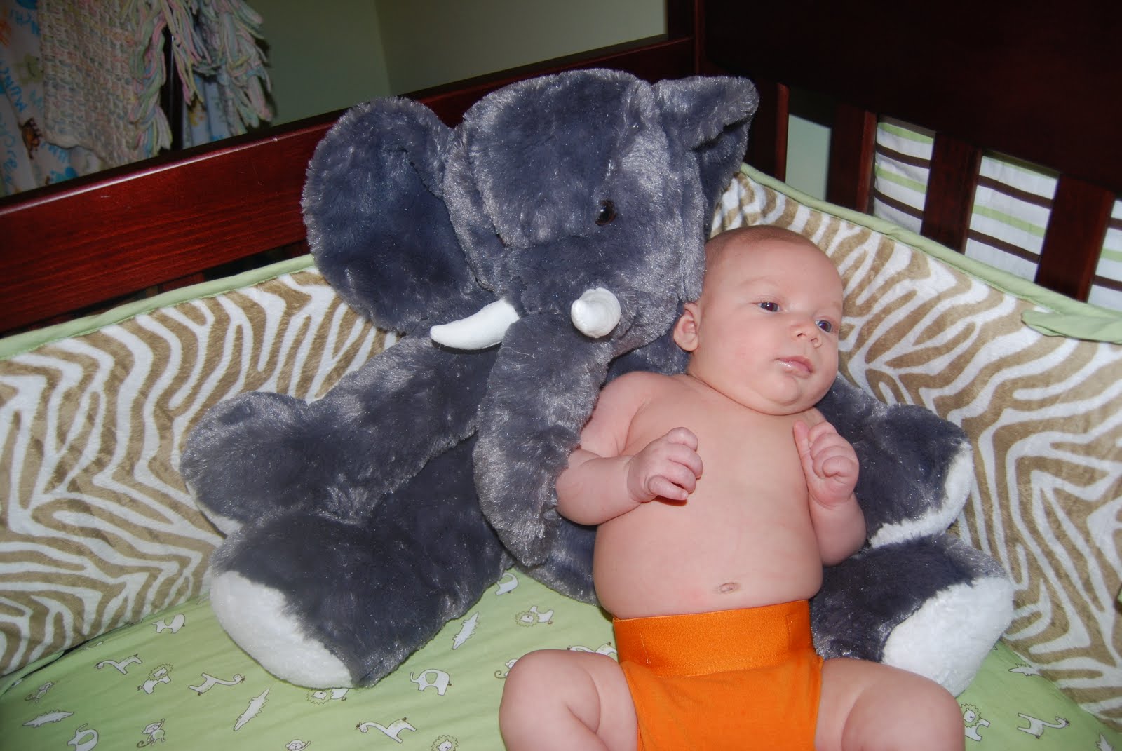 We'll be taking a photo with his stuffed elephant, Squishy each month to see how much change there has been (this is a tried-and-true scrapbooking secret).