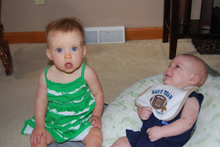 On Saturday, we took a trip to the Plummer's house for their annual fourth of July picnic and had a great time. Greyson actually stayed awake for his second "date" with Samantha. It is always so fun to see babies a little older than Grey to see what's in store for us in a couple months. Sam can sit by herself and pull herself up to stand! I can't wait for Grey to be able to reach out to be picked up though<3 Sam did that a few times and it made me pretty excited for the future:) We had good food to eat and plenty of good friends to talk with.