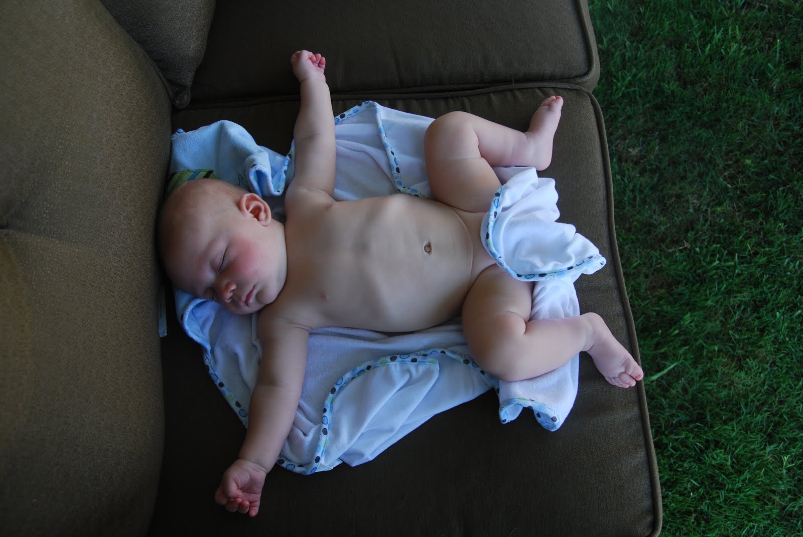 I tried out Grey's new swimming trucks, but they were a little big...so he went commando most of the day. I think he was pretty happy and comfortable about it!