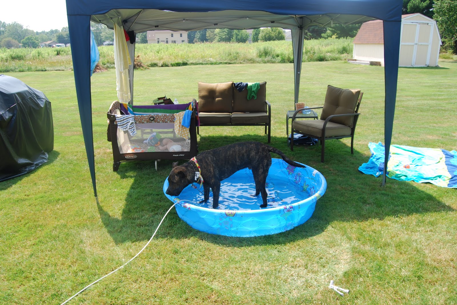 On Sunday, after church, we picked up a little pool for Bullet and Grey and Brandon set up a little outdoor haven for us to celebrate Independence Day. Bullet was absolutely in love with the pool and got right in, right away.