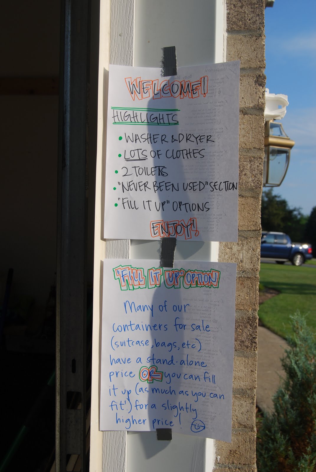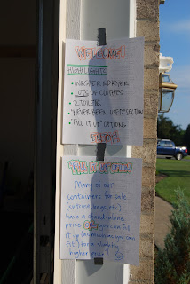 We had a few customers throughout the day and made a few bucks with A LOT of stuff still left over. It is always interesting to see what "treasure" people find from your junk. Somehow almost our entire "never been used" section remained untouched (who doesn't want to buy a brand new coffeepot -literally never taken out of the box- for only $15?!) BUT I almost had to step between a near-brawl between two women over a box of junky, dirty, plastic flowerbed bricks for $2?!?!...okay, I'm exaggerating a little but there were two women interested in them and we almost just put them in the trash the night before.