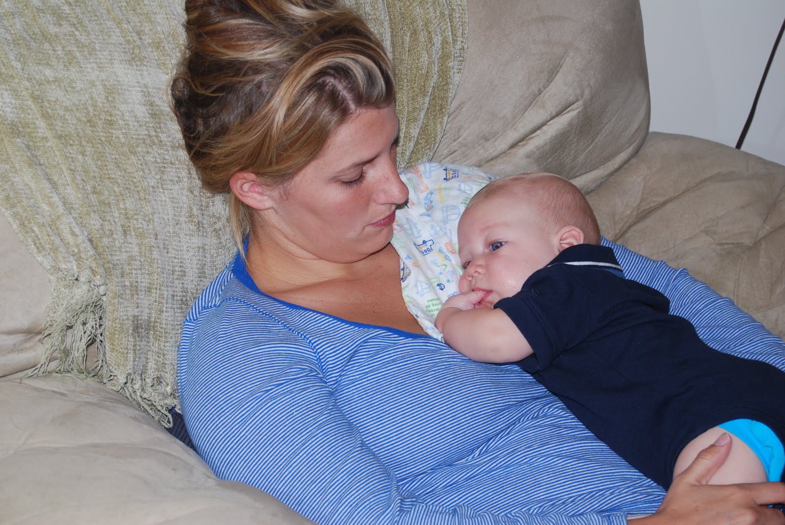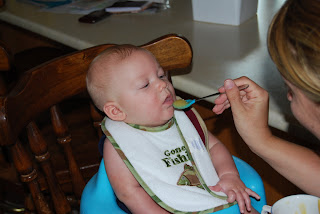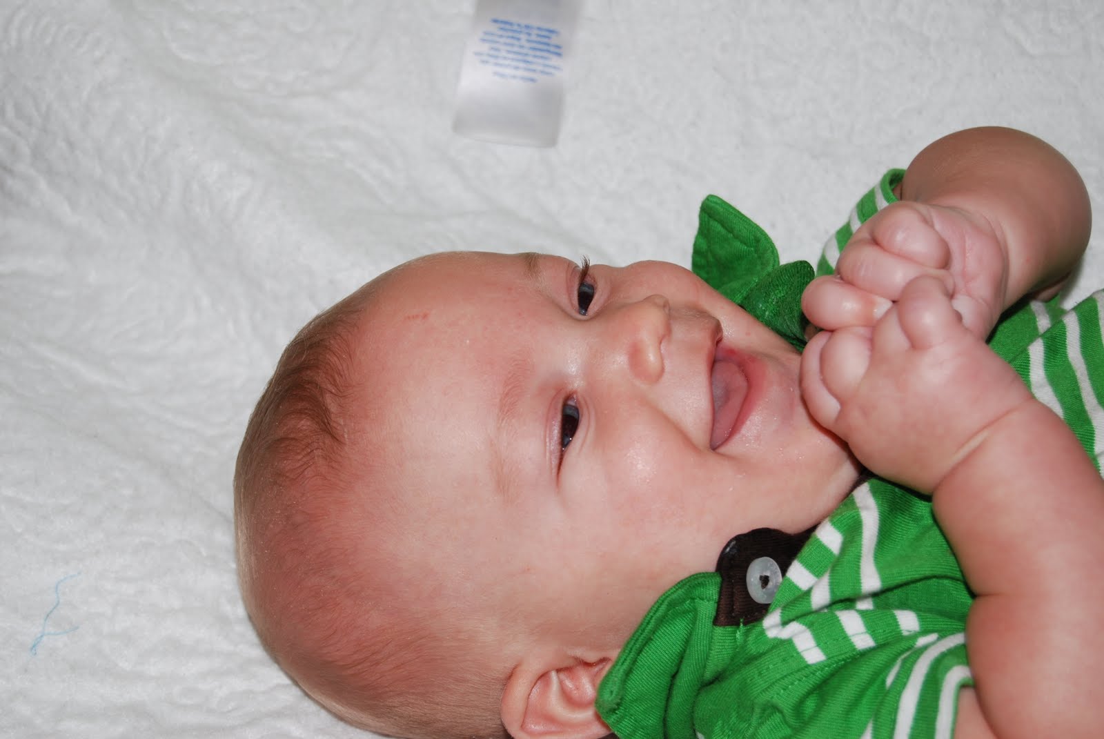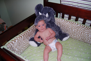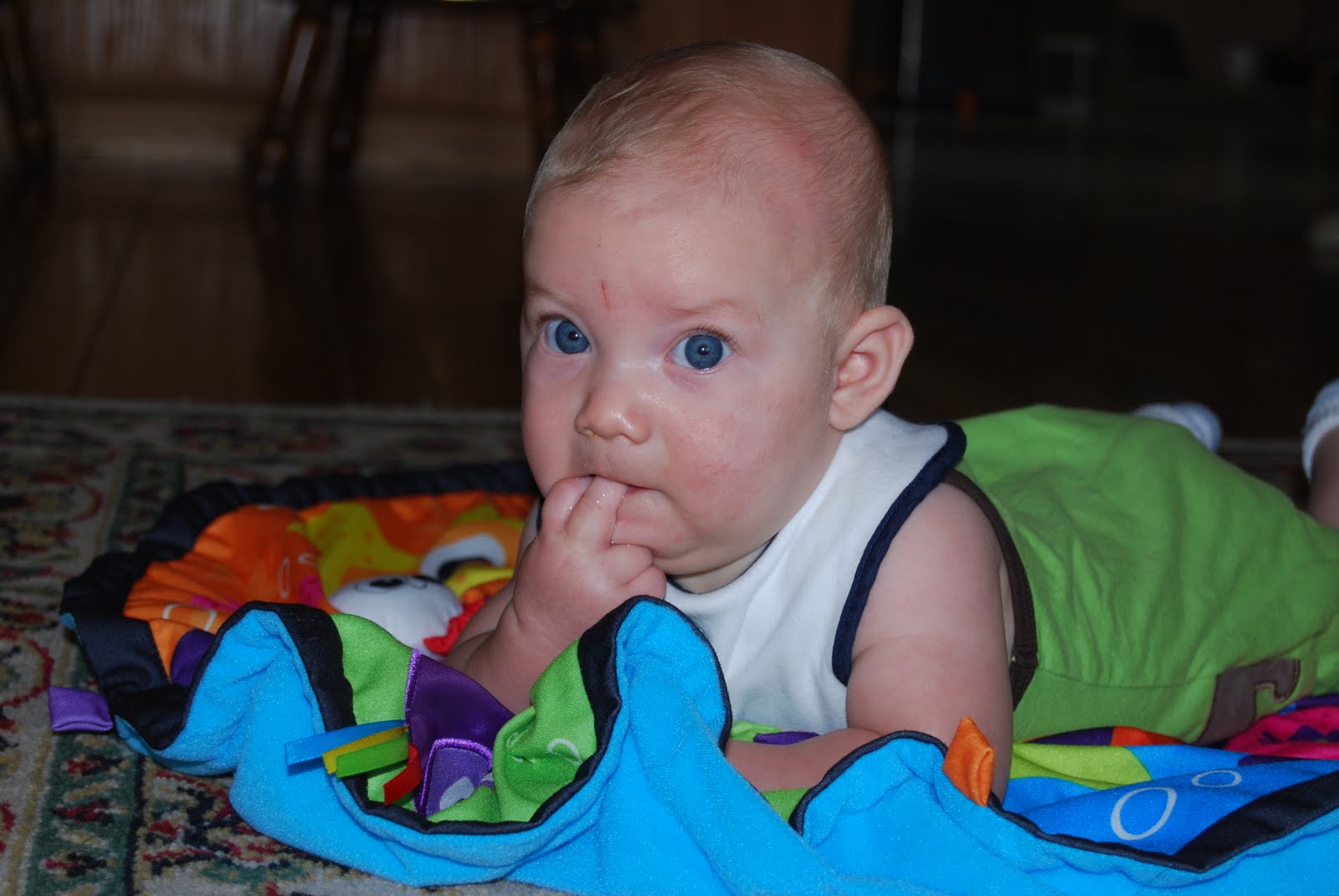 Greyson is four months old! He seems to be getting a little bigger (and heavier!) and smarter every day. Sometimes when he wakes up from a nap, I would swear that he grew from just an hour or two before. He is really getting cute and funny now.