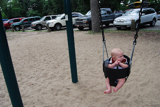 Greyson and I took our own trip to the beach this past Saturday. I initially wanted to rent a bike with a baby seat, but since Grey isn't a year yet, we weren't able to rent. So we stopped at the playground at the Cookhouse and BooBoo got to ride in his first playground swing! He didnt' seem too impressed and just sat there with his "serious" face on the whole time.