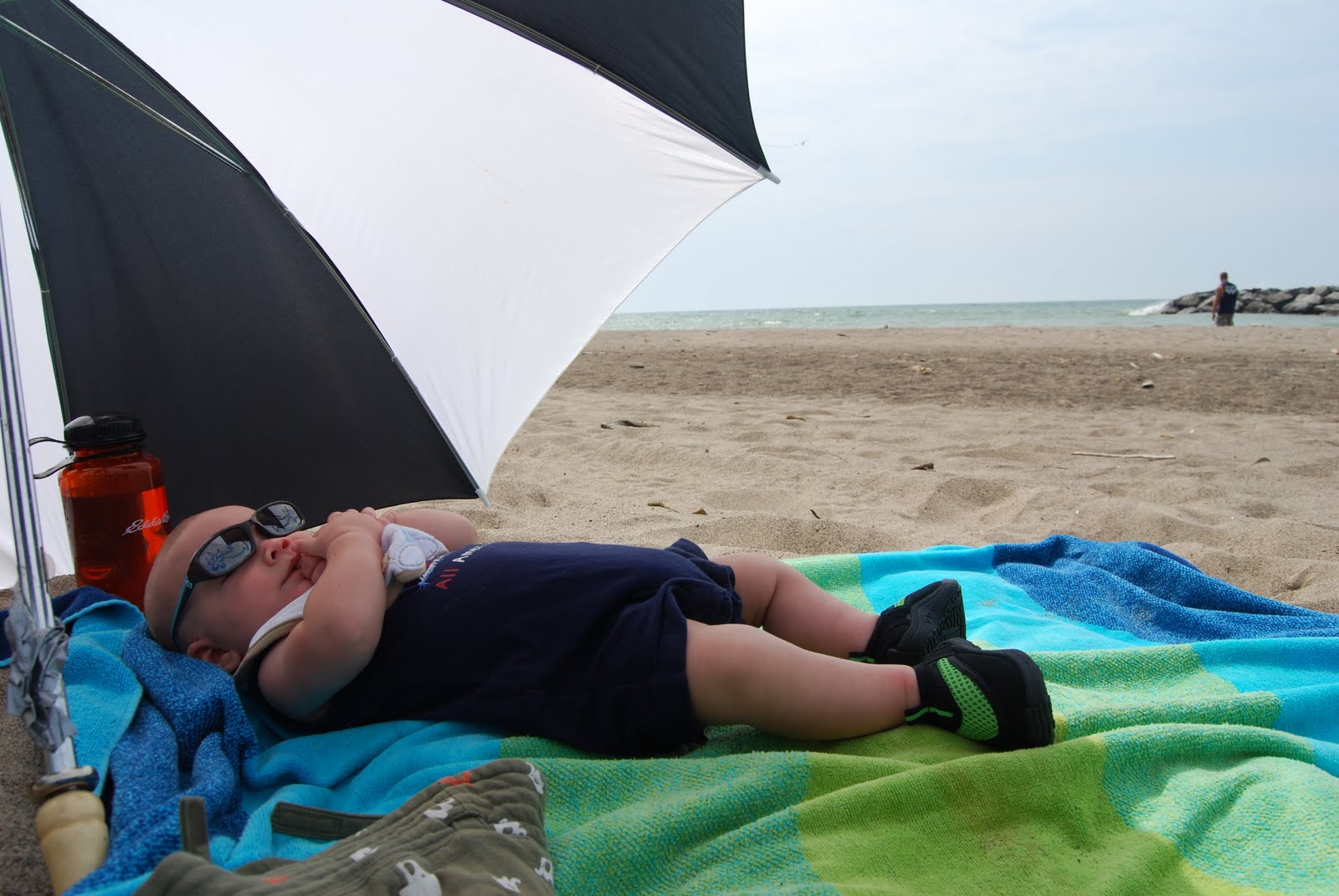 Then we stopped over at the beach and put our feet in the sand and water again. Grey was loving it and everyone else was loving his baby sunglasses. hahha. In other events, when I took his diaper off to put his little swimmie on, he peed straight up in an arc and on to his face. HAH. I'm sure everyone around us was just dying about it. I couldn't stop laughing and Grey could care less. what a funny little boy.