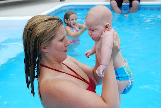 Our little baby is a swimming machine! We knew that Grey would probably like swimming since he has been so keen on taking baths ever since he was born...but we didn't think he would love it this much! Greyson has been to the Forte's pool a few times in the past few weeks and right away he started kicking his legs and moving his head side to side...like he knows what he's doing!! hahha, we were all cracking up watching him swim around like a tiny Michael Phelps or something!