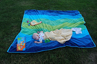 While we worked, Grey was happy to hang outside with us on a blanket and play with toys....er, fall asleep.