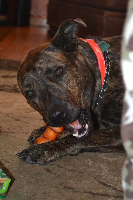 Oh, and besides bones for Christmas, Bullet also got an extra large crate that Brandon felt he needed to go inside of to help get Bully acquainted with it.  And then Greyson went in too and then finally Bullet ..and then they all laid down in it.  And then I secretly hoped that somewhere else in the world another mother is also taking a picture of her entire family in a dog crate because seriously....we can't be the only ones, right?
