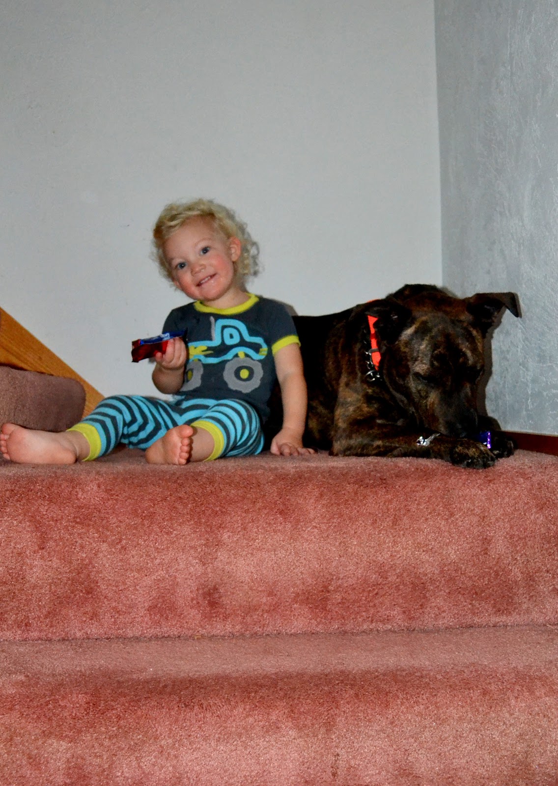 So instead, I'll leave you with this photo of my two sneaky fellas who stole granola bars from the snack cabinet and sat on the landing trying to rip the wrappers with their teeth.