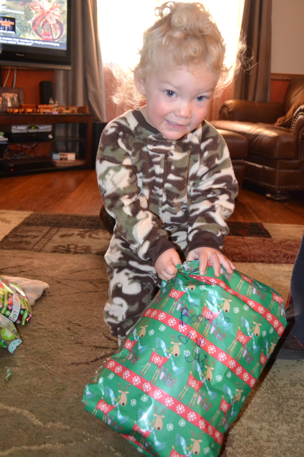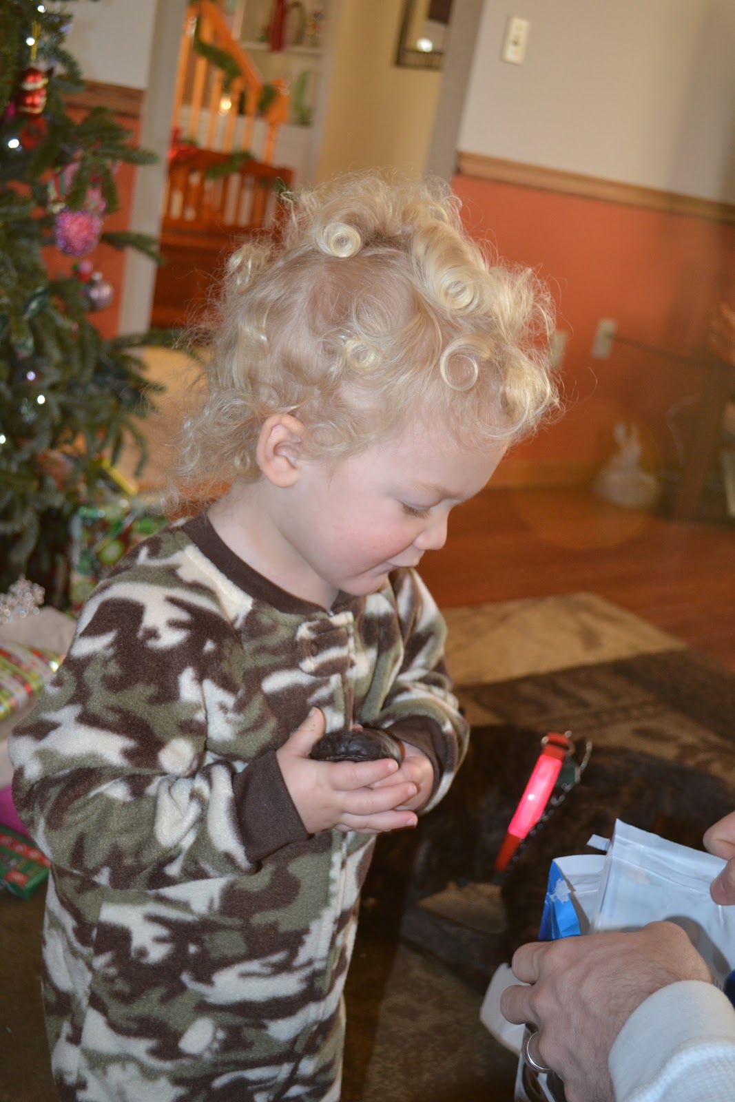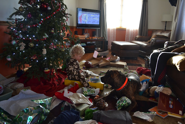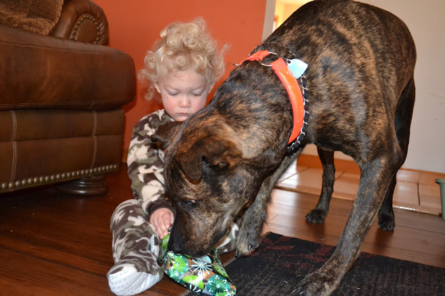 Grey was experiencing some toddler Christmas giving spirit and even helped Bully open one of his gifts before he dug into his own.