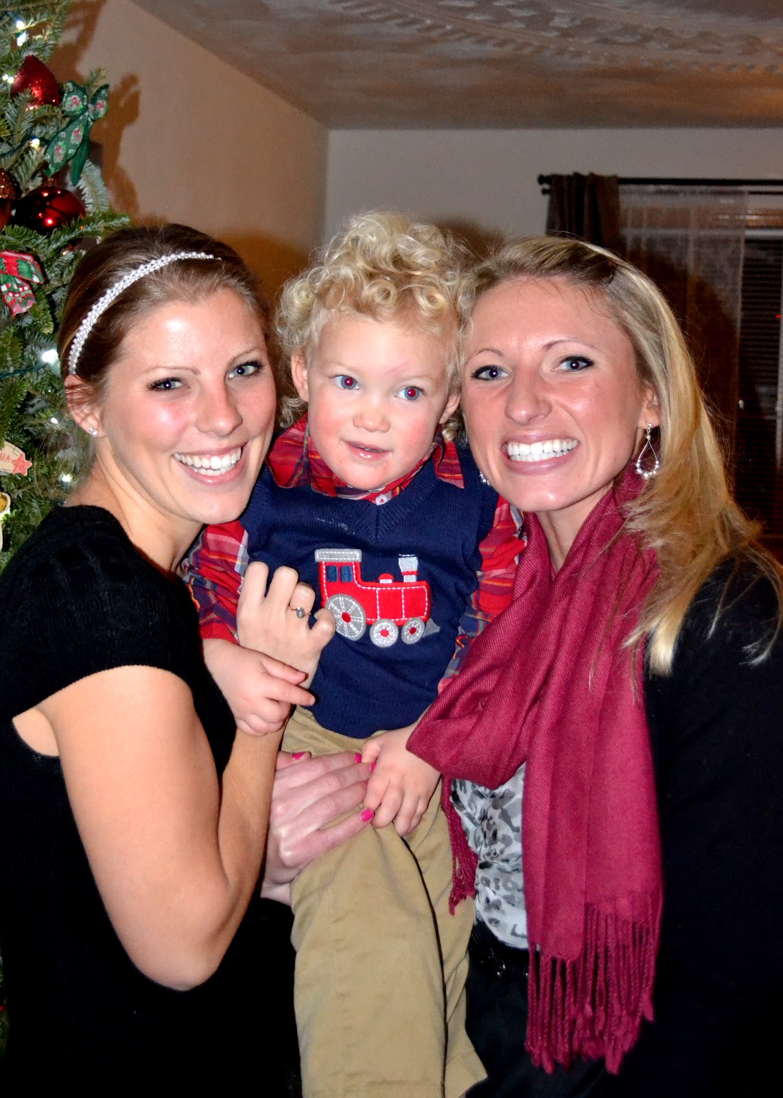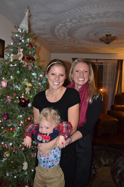 After Booboo's last nap of the weekend practically, and a quick cleaning run-through of the house, we made our way to Christmas eve mass (the 4 o'clock "children's" mass - aka the noisy one, where we definitely belong...as Greyson stands on my lap and shouts "Booboo BIG!").  My parents and sisters joined us for mass and then stopped over to our place to enjoy some traditional Christmas eve spirits..