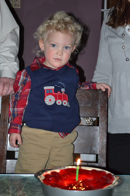 Followed by a Birthday song (complete with lighted candle) for Baby Jesus.  Grey even sang too, although his version goes like this:
