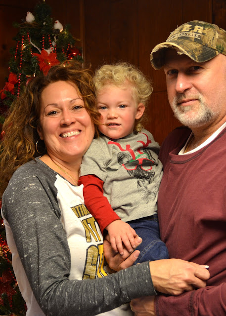 Booboo scored a ton of toys and clothes - but was most infatuated with his set of tools (some of which were battery operated which made for noises and shaking...which he loved).  He got to work on using them to help open other presents which caused him to wear a very serious face.