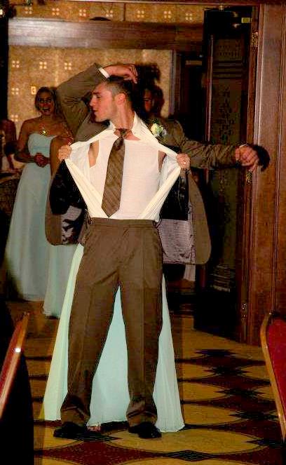 I ripped off the shirt of the bride's brother to expose his beater underneath during our entrance into the reception (please, we were just giving the ladies what they wanted),