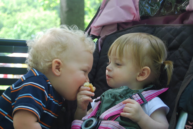 We had such a fun summer playing with Sophia and Aunt Kate. They kept us busy when times we got tough and kept us laughing and smiling. Now that they're older, Grey and Soph actually know each other (which is quite a feat for babies) and play together..and sometimes still alongside each other. Soph is the kindest, most gentle, honeychild in existence and calls out "Greyson!" and puts up with all his pushes and slaps and toy stealing. They waddle around and find strange places to sit down and share food and silverware and make their mummas happy...because when we watch them play, all we can see is how they'll be friends forever and that they'll take good care of each other in the future when friends become more important than mummas.