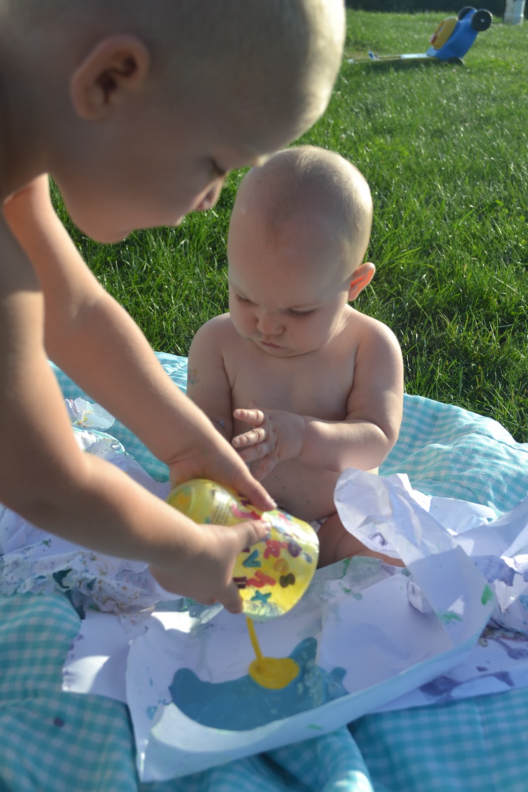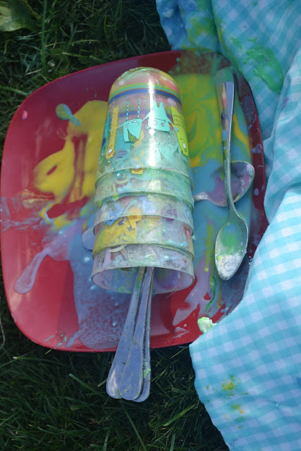 and then things started to go down hill. but in the spirit of kindness - I just sat back and laughed while the blanket had flour paint spilled all over it and Gemmi ate her weight in soggy paper, and my beloved children turned into crusty little multi-colored messes. It was bath night anyway.