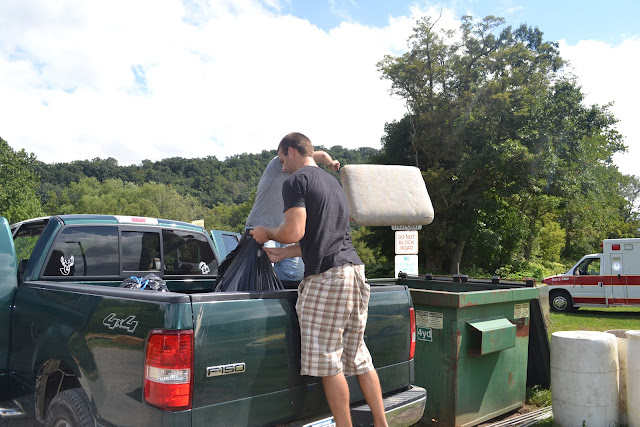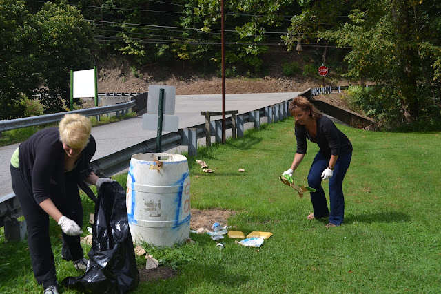 I drive by our favorite local park at least three times a week on the way to Grey's daycare, so I wanted to include some community beautification to my list of kindness. My family and I (while Gigi & Pappy Butch watched the kids in the park) took to the roadside to clean up the litter in the half mile between the park and a local restaurant/bar. The stretch was littered with the normal roadside garbage (soda bottles, plastic bags, snuff cans (we collected 5 big garbage bags of stuff!) - as well as some interesting items including a full size mattress and a dollar bill (score!). This was probably the most time-consuming and difficult task on the list since we were all sweating and smelling like garbage by the time we were done.