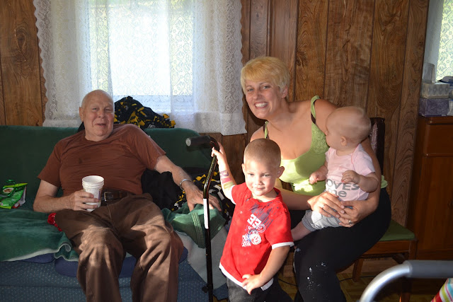Cliff might as well be one of my honorary grandpas. He is my parents' next door neighbor and my mom takes him coffee and dinner every night. He is one of the sweetest men on the planet and loves visiting with my kids. We stopped by for a visit and to bring him some sugar-free candy. He was happy to have the company and the sweets:)