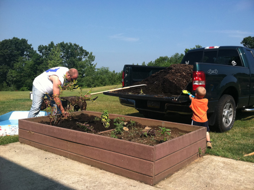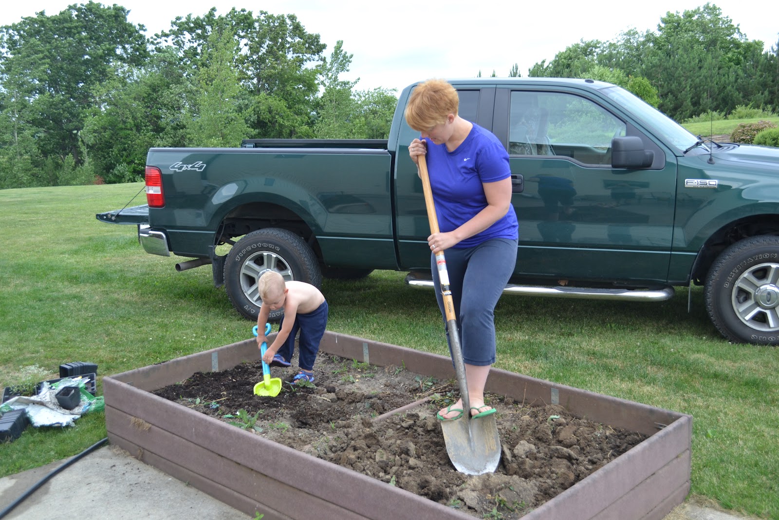 12 and 13. Make a children's garden and grow herbs: We turned one of the flower boxes behind the house into a children's garden. We visited Stuver's Nursery for any kind of 'hearty' plant (I actually requested 'plants that are hard to kill') and Grey helped us plant and later pick the fruits of our labor. Besides some flowering plants, we also planted a blueberry bush, a basil plant, a green pepper plant, and 2 tomato plants. It's a children's garden because Grey helped us plant it and take care of it - he was in charge of watering the plants and pulling the weeds too.