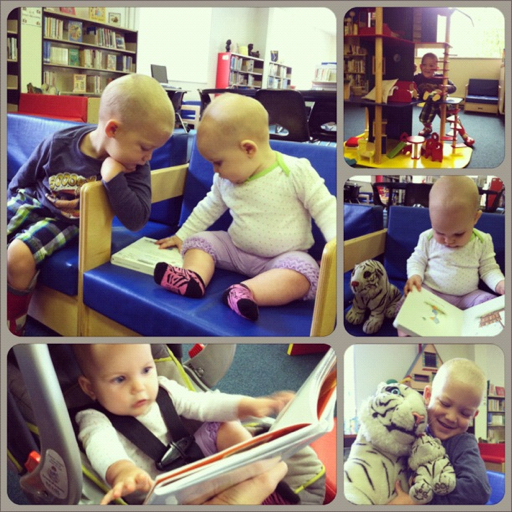 36. Visit the library: we read books, played with trains, visited their fish tank, played with stuffed animals and giant doll houses, and put together puzzles.