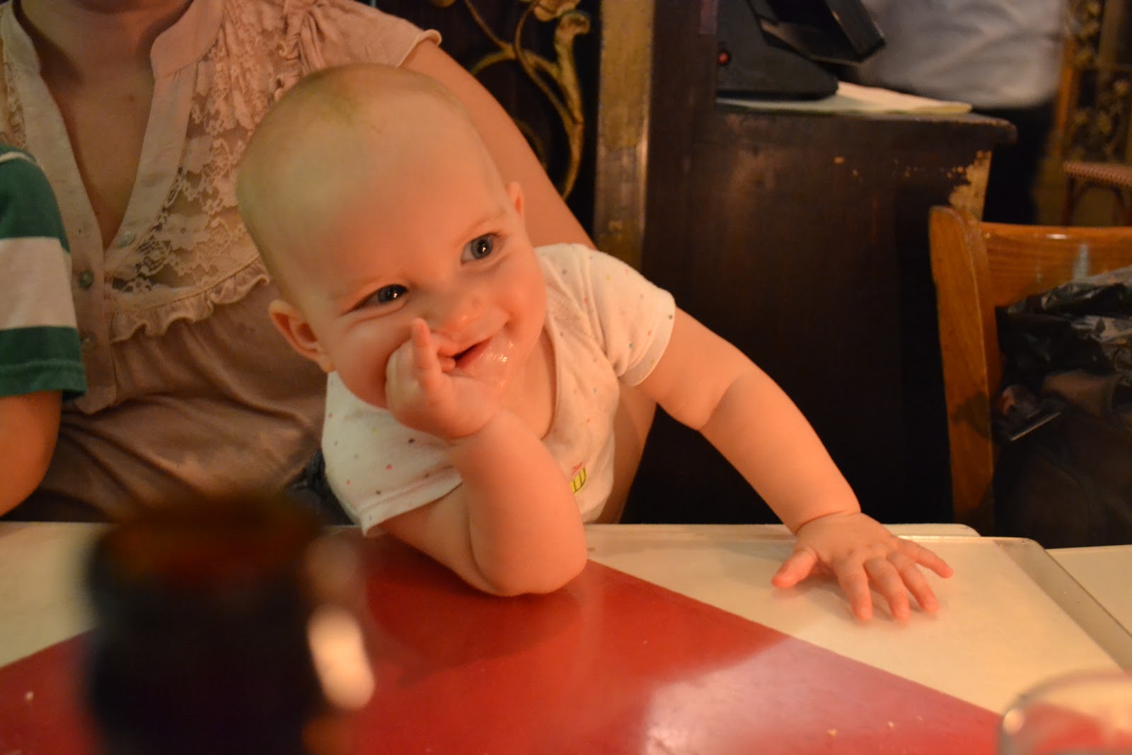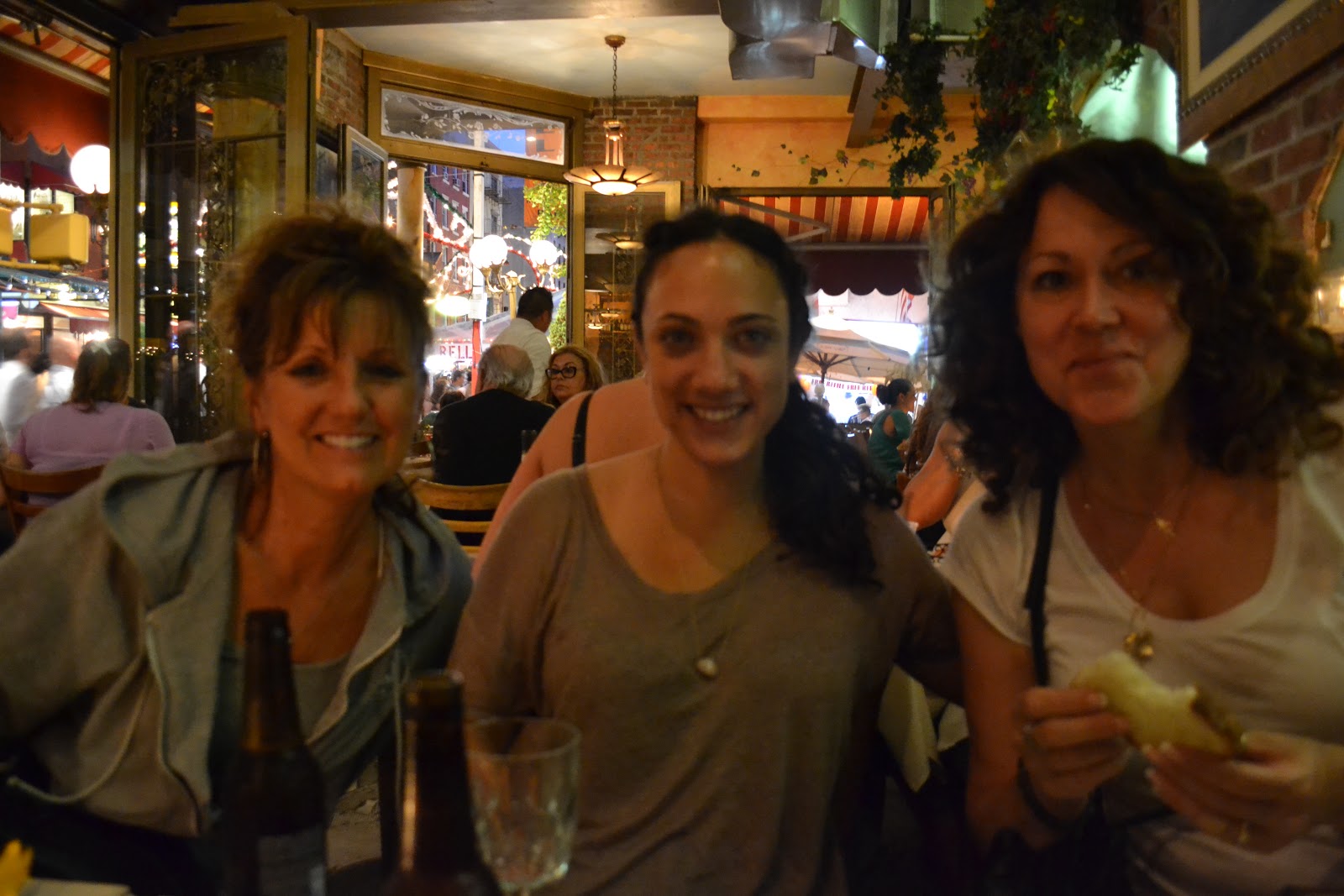 By the time we reached Manhattan we were all pretty tired and hungry...I'm going to go ahead and blame it on those two things that hazed our brains into thinking it was a good idea to head back into Little Italy during the San Gennaro street festival for dinner. I wheeled that double stroller through the crowd like a salmon and we were swept up into a restaurant that seemed overly nice to take on 4 tired women and 2 cranky kids. It was so nice to sit down and have a drink that we didn't even realize until almost an hour later that we were still waiting for our food. It did finally come at about the 70 minute mark; surprisingly though the kids weren't too misbehaved - could have been since they were sharing my lap and getting attention from Mum, Gigi, and Lenny across the table for a solid hour.