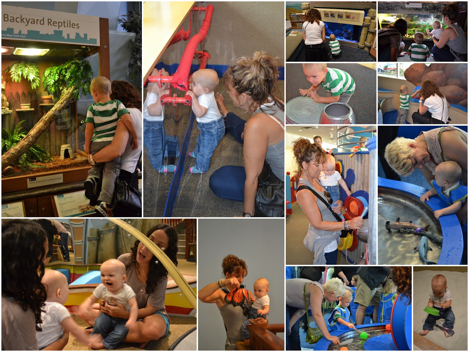 Then we took another quick subway ride over to the Brooklyn Children's Museum to spend part of the afternoon. We splashed, banged, explored, and discovered our way through the museum. They had so many toddler friendly exhibits. They even had a section just for babies under 18 months that Gemmi got her first chance to pretend to be a ballerina. Grey loved the backyard reptiles section which included some frogs and snake-bodies. They even had a giant albino anaconda that was kind of the coolest thing Grey had ever seen.