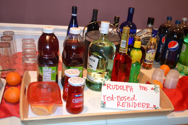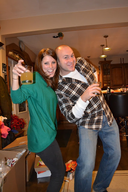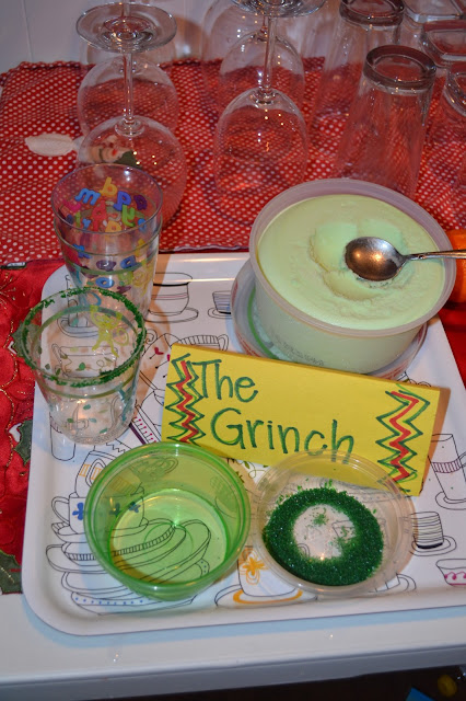 We headed home in time to meet both sets of grandparents for a little Christmas eve drink & snacks. I had found two cute drink recipes from pinterest: one for the grown ups (Rudolph the Red-Nosed Reindeer) and one of for the kids (The Grinch).