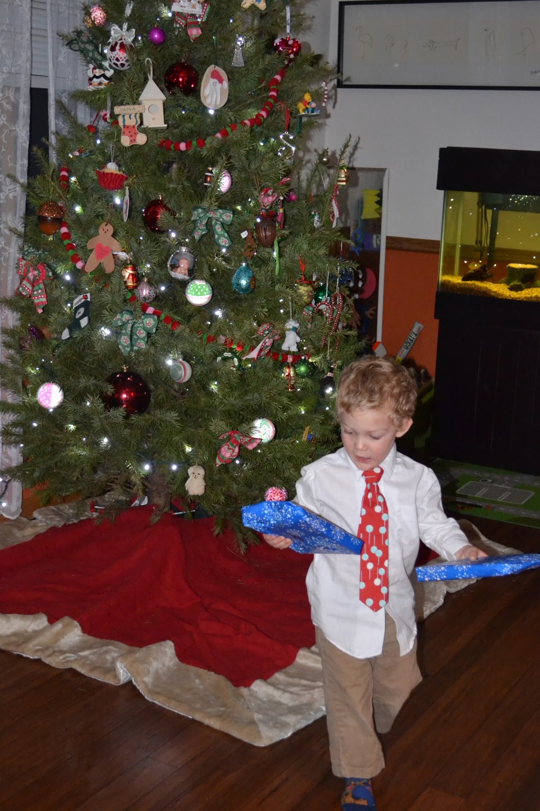 It also means that our decorations and Christmas tree has to hold out for a holiday that stretches from December 1-January 8. Our tree just barely made it this year -