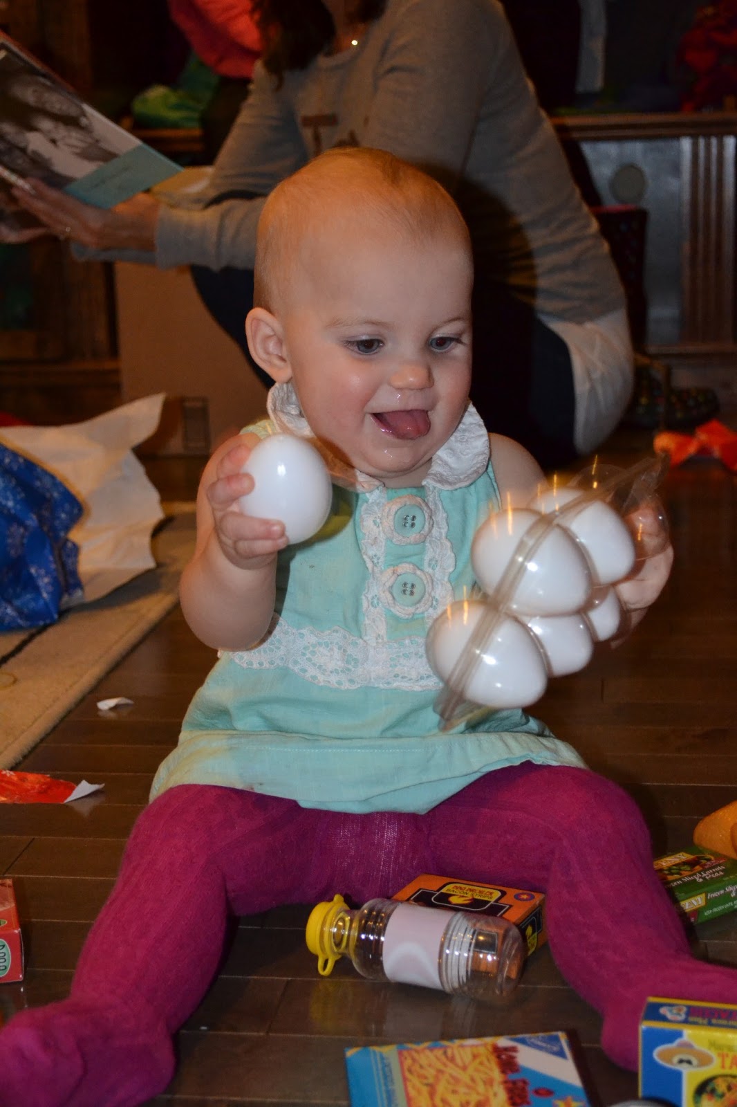The kids got to open one gift (jammies) and then were shipped to bed so Santa could come. The grown-ups spent the rest of the night laughing and telling stories around the table before too late and Santa really would have to come.