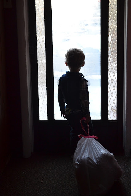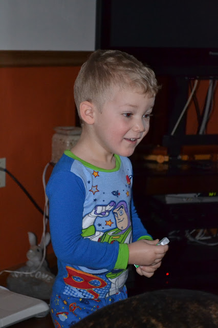 B had to work on Christmas eve morning, so the kids and I did our best to get through the day without (hardly any) time outs and kept our grubby paws off of the Christmas cookies we'd been collecting from our previous days of Christmas. Then we were off to Christmas eve Mass only to squeeze into the very last pew (because we cannot get out the door on time...ever) and attempt to endure our children very ungracefully and unquietly sit through the Christmas pageant and mass. Oh, it was pretty painful and I was terribly embarrassed the whole time. Thankfully, it's called the "children's mass" for a reason since there were 7-8 other parents bopping up and down in the vestibule of the church trying to quiet their own gremlin children.