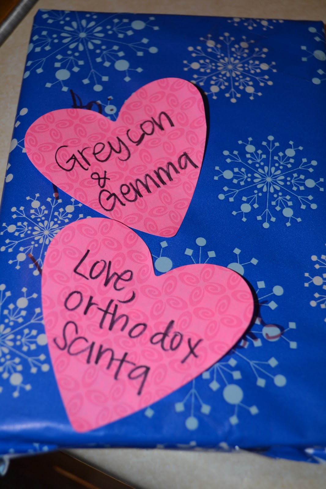 'Orthodox Santa' dropped off a present each and joint present for the kids. (Is it weird Grey was wearing the same jammies on both Christmas mornings? hah). Grey got his favorite; more green gum! Gemma got a box of ribbons and they got together the movie Brave (which we have since watched approximately 746 times).