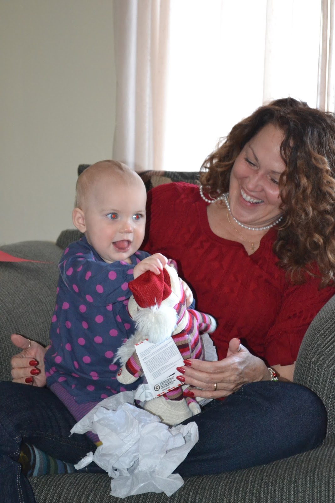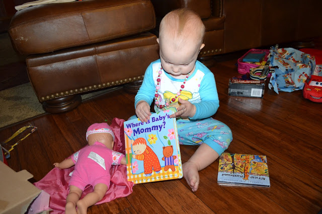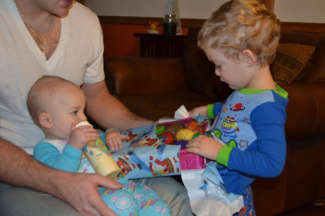 Since it was a long three days of Christmas and driving and playing prior to Christmas morning - I (very impatiently) resisted the urge to wake the kids up shouting on the top of my lungs, "It's Christmas, It's Christmas, wake up!" (which is exactly what I have always done my whole life) because the kids really needed the sleep. So I laid in bed and stared at the ceiling until finally we heard a the old familiar sounds of babies waking on the monitor.