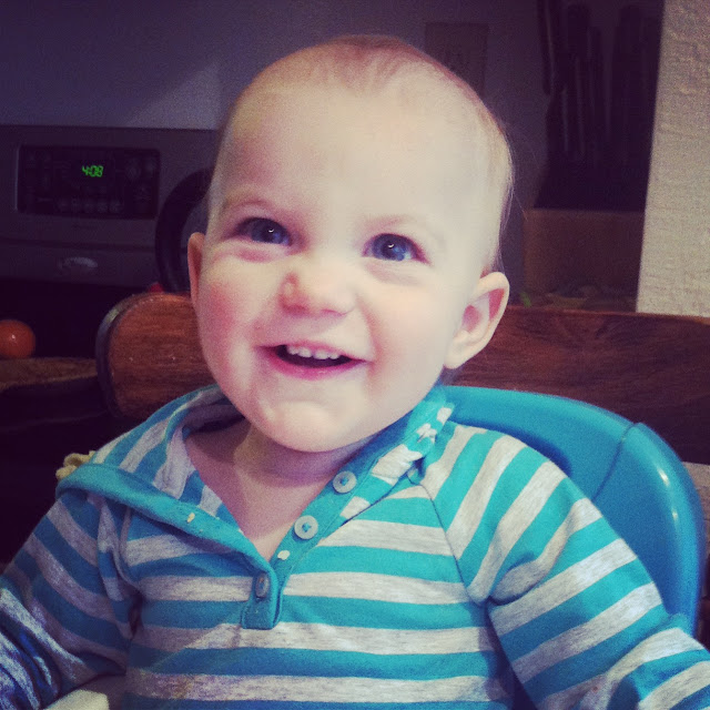 I feel like I'm standing with my back to the door of One, pushing against it to hold off all the one-ness that will soon make its way onto our girl. When those One doors open, it reveals a sliding-board to toddlerhood that the farther along she slides, the quicker she'll go - learning to run, then speak real words, then stringing those words into sentences until before too long she's holding conversations with me, the deli guy at the grocery store, and her stuffed animals. I will turn back to look through those exit only doors and long for the days of her grinning baby cheeks.