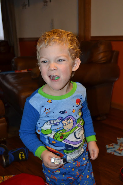 Greyson's favorite gift is a tie between his new bow & arrow set and his very own pack of 'green gum' from his stocking.