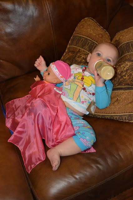Gemma's favorite gift is a toss up between her new silkie (Sarah's Silks Mini Playsilk) and the bubba she promptly guzzled down after opening gifts.