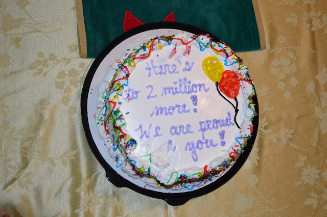 And because my husband is bar-none the handsomest, most thoughtful fella around; he went into cahoots with my Mom to get me an ice cream cake celebrating the fact that my blog hit the 2million pageviews mark. (thank you to all of my readers!) But seriously, he's the best because he really is...but also because the cake was reese's cup ice cream cake. Grey and I practically ate the whole thing ourselves.