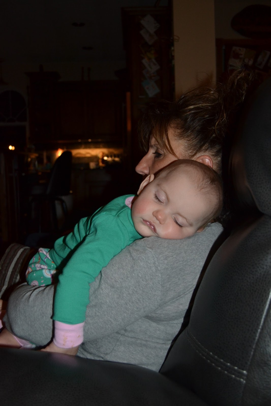 Or this afternoon when I picked her out of her crib after her nap and she smiled that sweet smile at me. Then she smacked her lips together which prompted me to say, "You want a kissa, Gemmi?" To which she leaned her sweet little open mouth to my lips and in that sweet, tender moment I saw my daughter as a toddler who knew what she wanted and how to ask for it. 'Oh no,' I thought, 'she's growing older with each nap.'