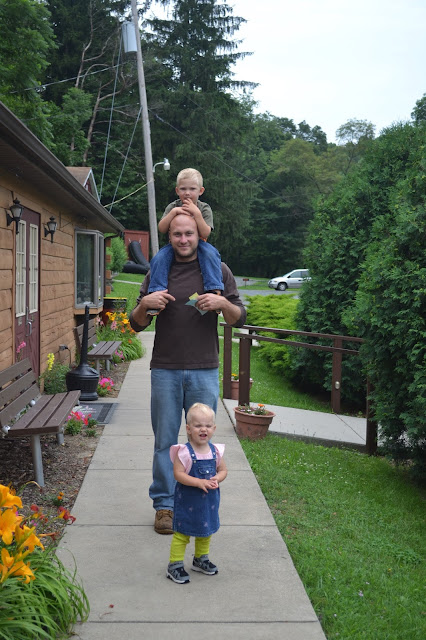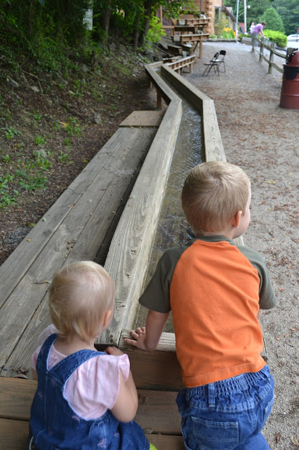 We made the short trip out to Huntingdon, PA (about an hour away) and signed up for the next available tour. I was happily surprised to see that there were plenty of people visiting the caverns - lots of small families. I love seeing local spots being supported and visited :) While we waited for our tour, the kids played in the outdoor 'mining river' and exploring the wooded picnic areas.