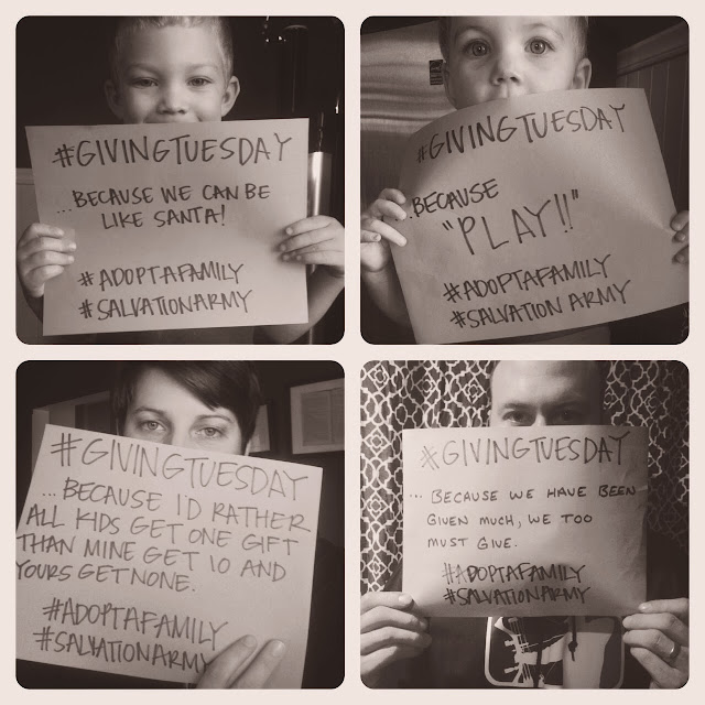 We decided to spend our #GivingTuesday evening out shopping for our adopted family from Salvation Army for Christmas. It is one of our 12 Months of Kindness Acts - and one of our favorites, so we knew #GivingTuesday was the perfect opportunity to doing what we care about for someone else.
