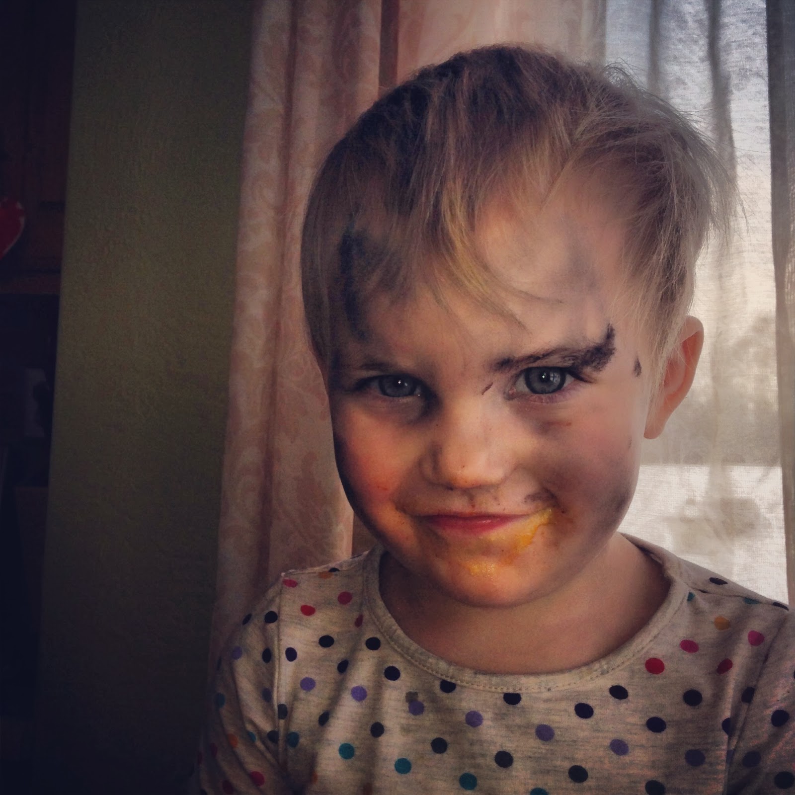 She is a little wrecking ball that barrels around the house with bruises on her face and stolen candy in her hand.
