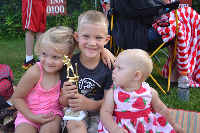 Polishing Greyson's first ever trophy from his teeball season.  And by polishing, I mean Grey is polishing it - hahaha, definitely not this chick.  He was so happy and excited about getting a trophy, it was so sweet and hilarious.  oh, that boy.