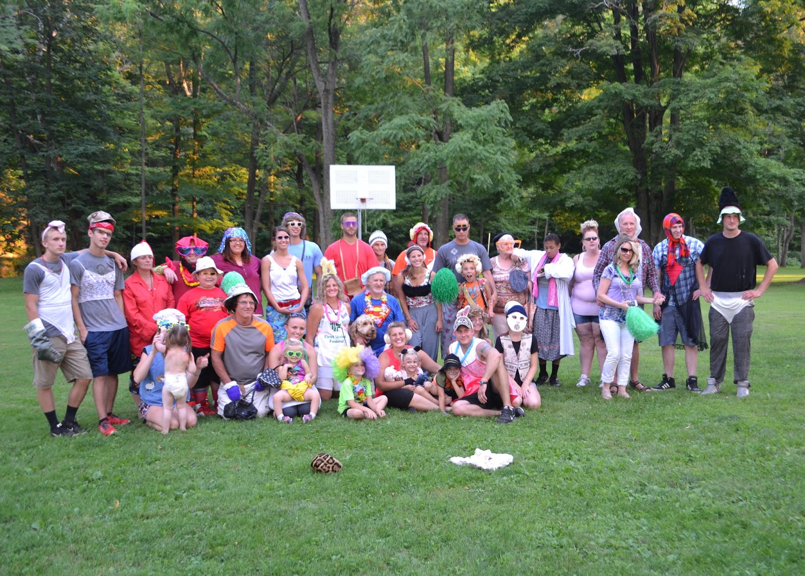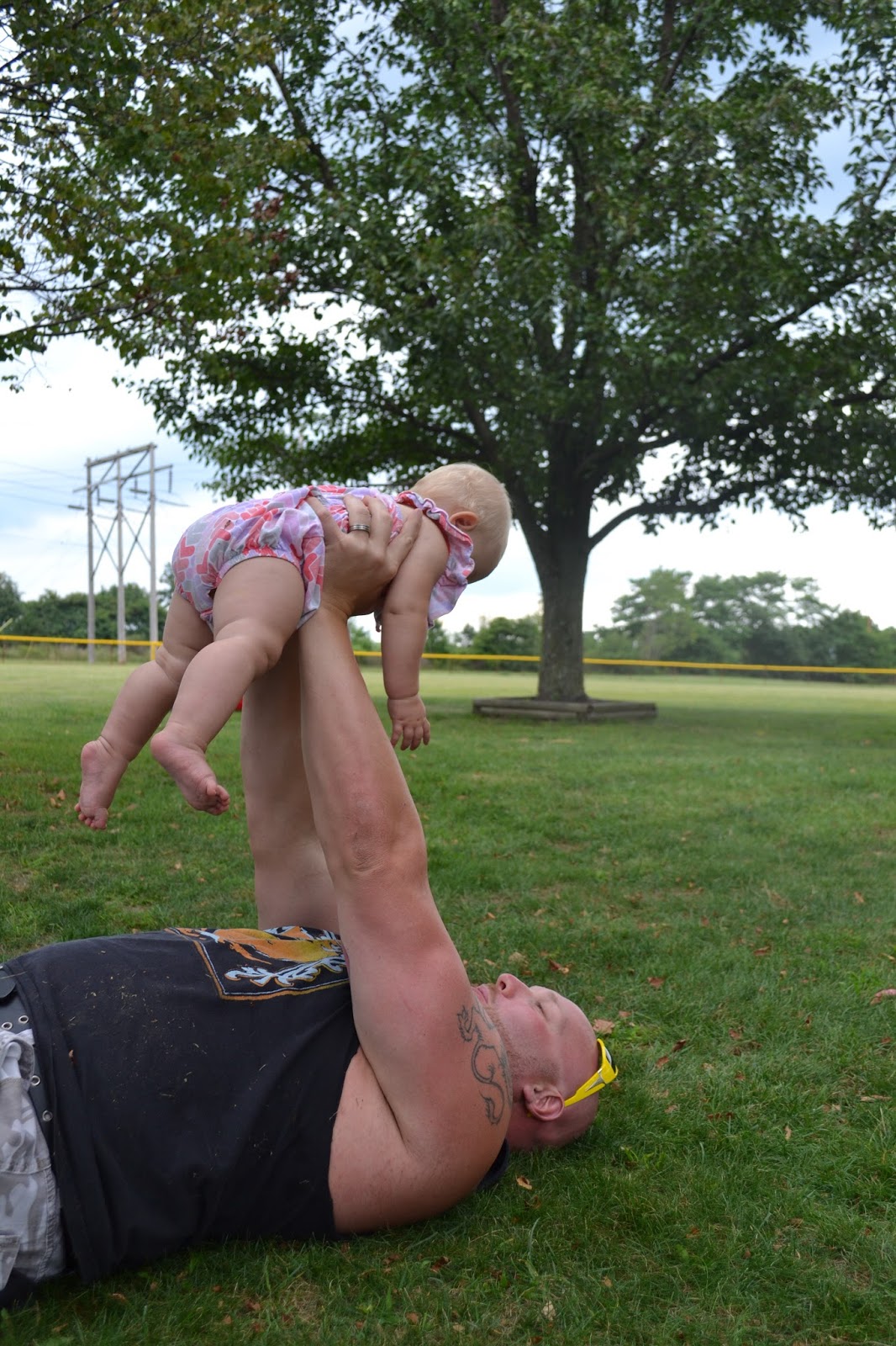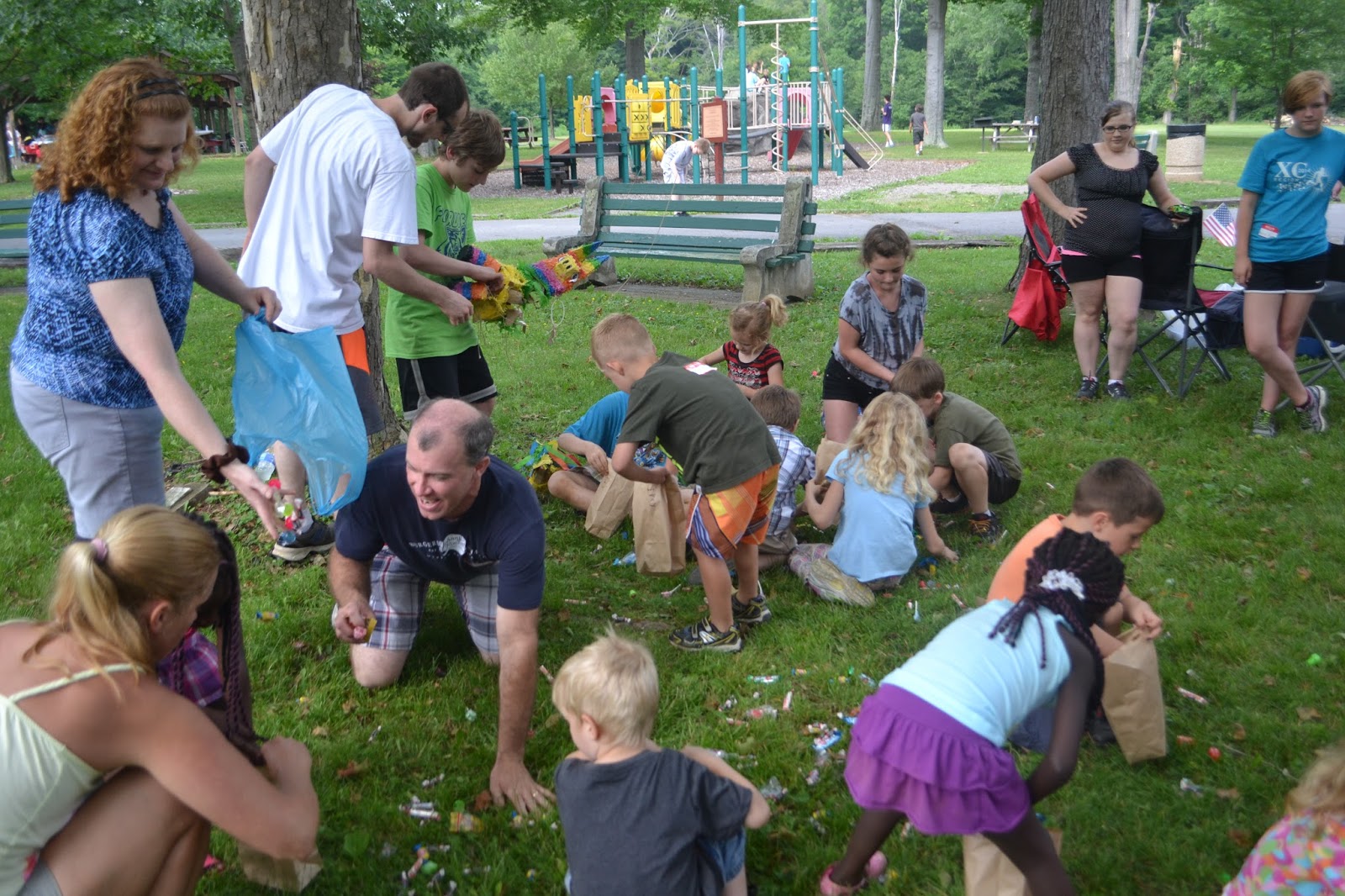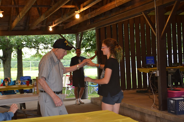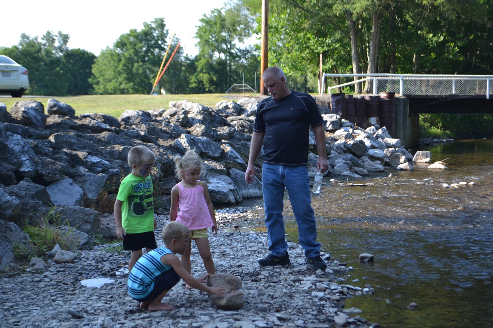 The Plunkett reunion:  we attend as representatives of my grandma (my Dad's mom).  Gram was one of eight kids, only four of whom still here today.  We had a good old fashion day of fun with our aunts, uncles and cousins.  Greyson loved playing softball with the guys, we had kids' games including the parachute and the silly-dress-up game (a favorite that I've now inherited!!), and playing the creek nearby looking for crayfish.  The big dodgeball game at the end of the evening is something that Greyson is still talking.