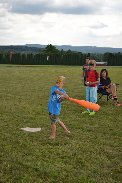 The Uzelac reunion:  we attend as legacy of my grandma (my Mom's mom).  My grandma was one of fourteen, ten of whom are still with us today.  The kids got their faces painted, played in the bouncy houses and chased their cousins around all day.  Brandon and Grey were in their glory to participate in the home run derby (both three times!), and the big kids were even brave enough to attempt a try at singing in the talent show (Florida-Georgia Line's 'Cruise') which they were thankfully saved by their Aunt Uch when they got a little stage fright-y midsong!