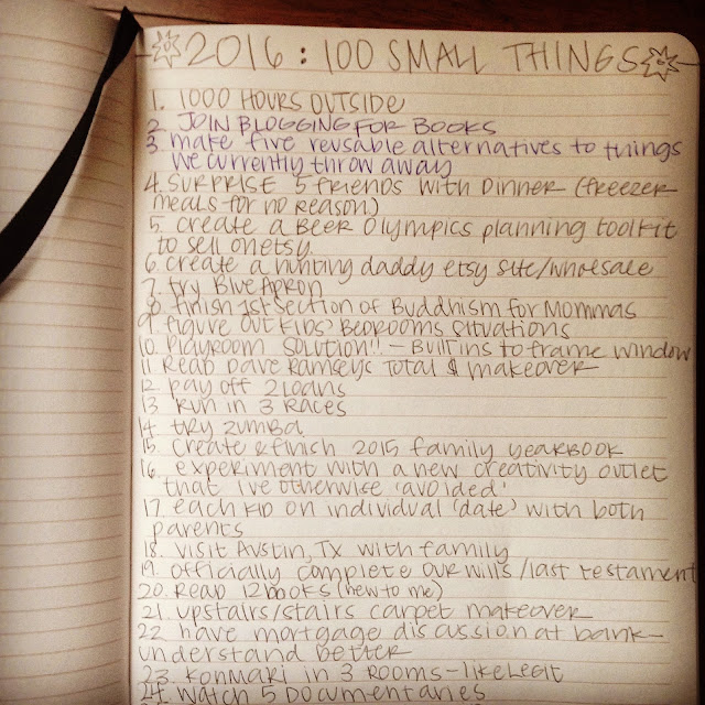 we're all trying to figure this out and my 100 small things list is my focused way to make sure that despite the wildness and beauty of this life; I remain pointed in the direction of my dreams. That I am still playing the 'long game' for the person I hope to be and the life I hope to be living when I'm an old lady sitting on my porch swing holding Brandon's wrinkled, calloused hands listening to our bajillion grandkids chasing chickens around our yard. (hey, we all got dreams).