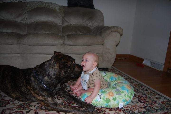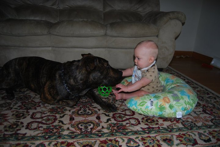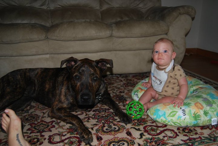 We learned quickly that Bullet was great at learning tricks, loves swimming (so much I'm convinced he'd swim until he'd drown if left unattended). He loves Brandon with the fierceness of a thousand moons, he listens to me on the first command, and he loves (and puts up with a lot of forceful hugs and tugs) from our babies.