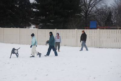If we can't jog together (because no one is home to watch the kids), we'll load up the crew and take walks together which helps at least to give Bullet new things to smell and pee on.