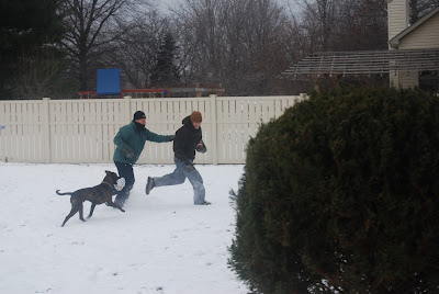 I try to get us out at least three or four times a week, just me and Bullet, to jog the trails behind our house. We have grown a lot over the last seven/eight months. Bully has been practicing focusing only on me even if he sees distractions while we jog (deer, turkey, humans) and I can jog without totally hating life for about 2.5 miles...after that until about three miles Bullet and I both just keeping looking at each other like, 'dude, this sucks and I'm bored.'