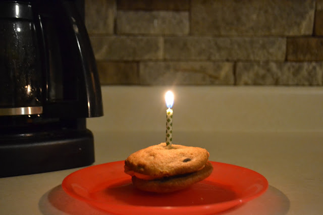 The two big kids woke up in time to sing 'happy birthday dear Daddy!' as he blew out a candle on one of our chocolate chip icing sandwich cookies before hustling out the door to the grand opening of the store he's been working on (which hopefully means no more super late nights! hooray for us all!)