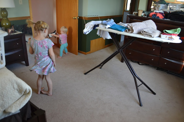 The girls woke up and I tried to do some quick calculations about time.  I figured I could get the kids clothes folded and the truck packed for an evening at my parents' house before we had to pick up Grey, right?  right?!