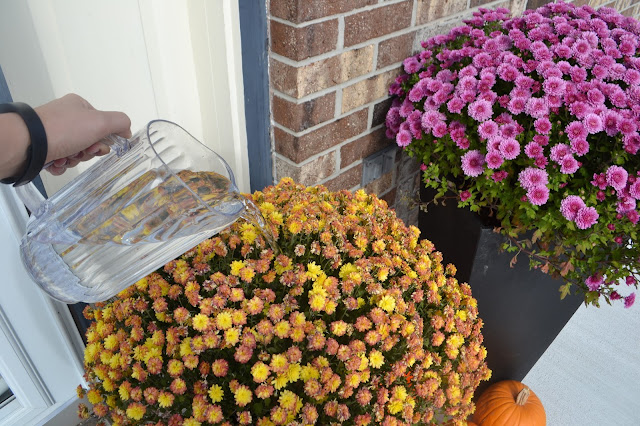 By the time we made it home, the girls were both snoozing in the back.  Violet went peacefully into her crib and Gem (thankfully) continued to nap after I transferred her to the couch.  I got time to blog, and do some chores like watering my poor thirsty Mums on the front porch (sorry babies).